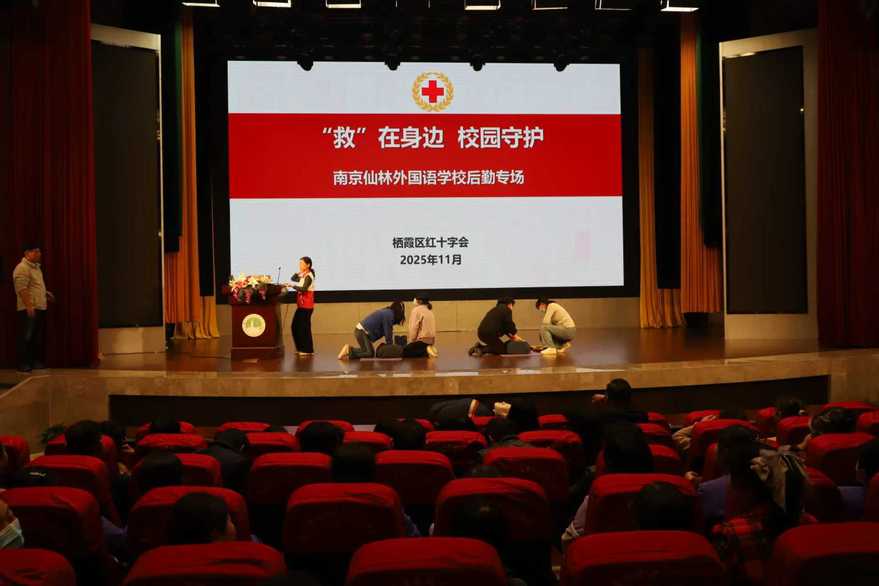 本次特邀省紅會(huì)五星級(jí)師資,南京市紅會(huì)應(yīng)急救護(hù)師資志愿者善織協(xié)會(huì)棲霞區(qū)分會(huì)常務(wù)副會(huì)長(zhǎng)祁禮平老師為大家培訓(xùn)。培訓(xùn)內(nèi)容緊密結(jié)合校園生活實(shí)際,聚焦“黃金救援4分鐘”,重點(diǎn)講解了心肺復(fù)蘇(CPR)的基礎(chǔ)原理、自動(dòng)體外除顫儀(AED)的操作使用、氣道異物梗阻的海姆立克急救以及燙傷、挫傷、鼻出血等常見意外傷害現(xiàn)場(chǎng)處理,通過真實(shí)的校園案例闡明掌握急救知識(shí)的重要性,并逐步分解每部操作要領(lǐng)和注意事項(xiàng)。