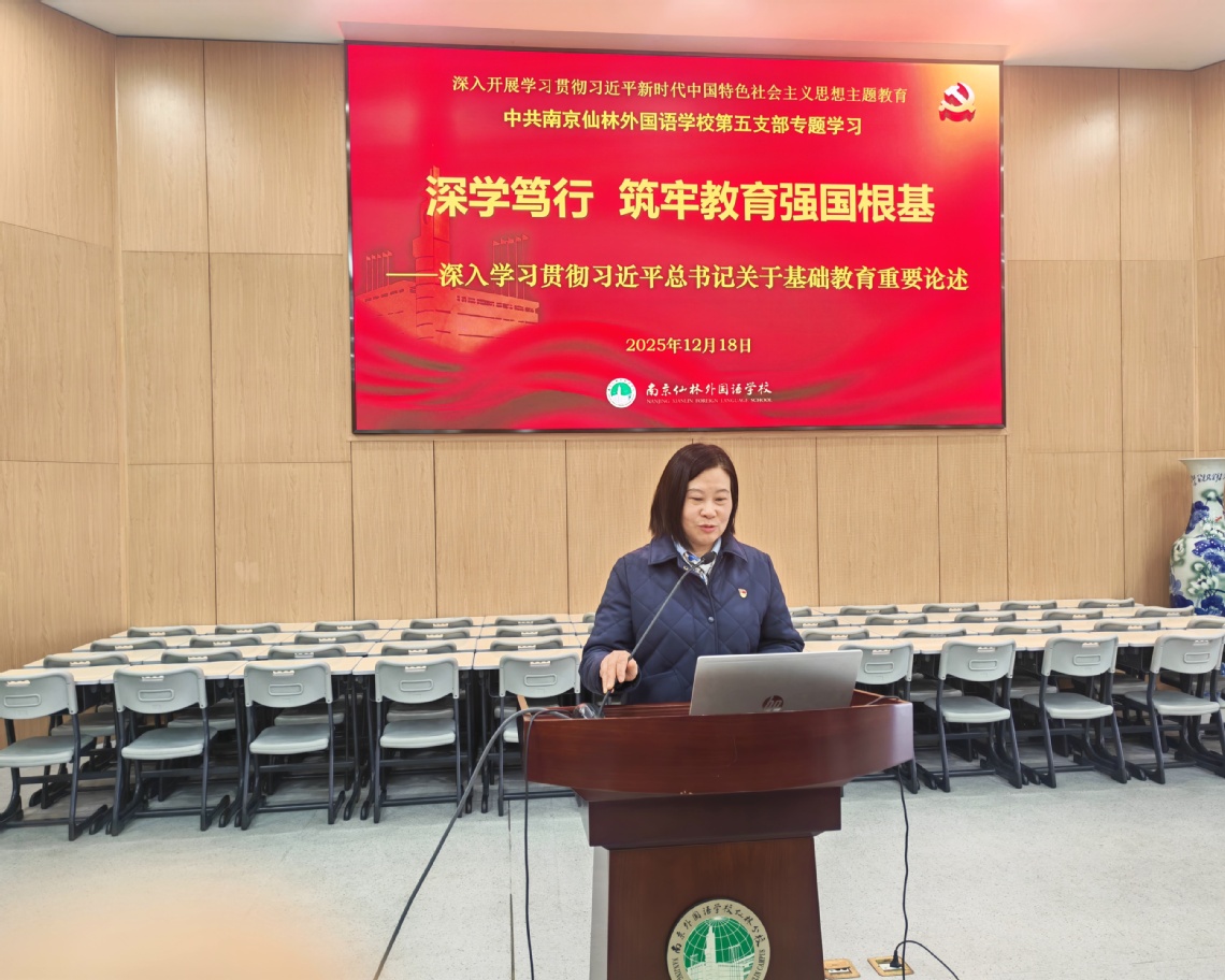 大會(huì)首先由學(xué)校張校長(zhǎng)主講專題黨課。他以“深學(xué)篤行筑牢教育強(qiáng)國(guó)根基”為主題,系統(tǒng)闡釋了習(xí)近平總書記關(guān)于基礎(chǔ)教育重要論述的核心要義。黨課重點(diǎn)圍繞六個(gè)方面展開領(lǐng)學(xué):一是堅(jiān)持和加強(qiáng)黨對(duì)教育事業(yè)的全面領(lǐng)導(dǎo),這是辦好教育的根本保證;二是緊扣“立德樹人”這一根本任務(wù),深刻回答“培養(yǎng)什么人、怎樣培養(yǎng)人、為誰(shuí)培養(yǎng)人”的核心問(wèn)題;三是大力發(fā)展素質(zhì)教育,著力培養(yǎng)學(xué)生德智體美勞全面發(fā)展與創(chuàng)新實(shí)踐能力;四是把牢社會(huì)主義辦學(xué)方向,確保黨的教育方針不折不扣落到實(shí)處;五是踐行以人民為中心的發(fā)展思想,持續(xù)辦好公平而有質(zhì)量、人民滿意的基礎(chǔ)教育;六是堅(jiān)定不移推進(jìn)改革創(chuàng)新,為教育發(fā)展注入強(qiáng)大動(dòng)力與活力。黨課強(qiáng)調(diào),全體黨員必須深刻領(lǐng)會(huì)其精神實(shí)質(zhì),自覺用以武裝頭腦、指導(dǎo)實(shí)踐、推動(dòng)工作。