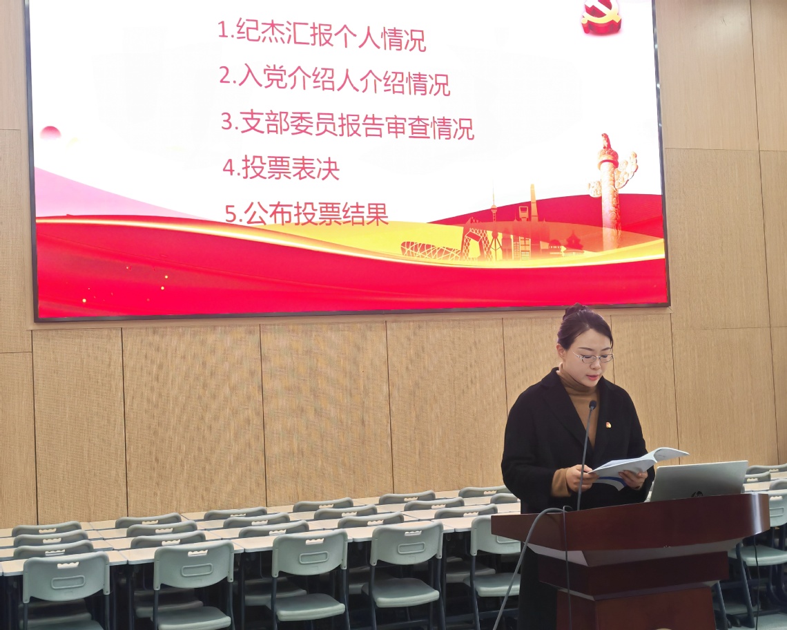 隨后,會(huì)議嚴(yán)格按照組織程序,舉行了黨員發(fā)展大會(huì)。會(huì)議對(duì)接收紀(jì)杰同志為預(yù)備黨員的事宜進(jìn)行了充分討論。紀(jì)杰同志認(rèn)真匯報(bào)了對(duì)黨的認(rèn)識(shí)、入黨動(dòng)機(jī)及個(gè)人情況。其入黨介紹人介紹了培養(yǎng)考察情況,與會(huì)黨員紛紛發(fā)表意見。經(jīng)支部大會(huì)無(wú)記名投票表決,一致同意接收紀(jì)杰同志為中共預(yù)備黨員。此次發(fā)展工作為黨支部注入了新鮮血液,展現(xiàn)了黨組織持續(xù)的凝聚力與活力。